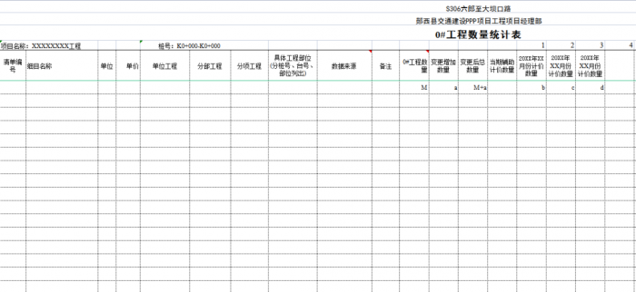 “0#”臺(tái)賬按單位、分部、分項(xiàng)工程劃分標(biāo)準(zhǔn)編制,可以將計(jì)量支付與質(zhì)量檢驗(yàn)評(píng)定有機(jī)結(jié)合起來(lái),這樣可以使質(zhì)檢、測(cè)量、實(shí)驗(yàn)、計(jì)量等部門的內(nèi)業(yè)工作都在同一個(gè)規(guī)則下進(jìn)行,提高了整個(gè)項(xiàng)目(合同段)內(nèi)業(yè)管理的效率。